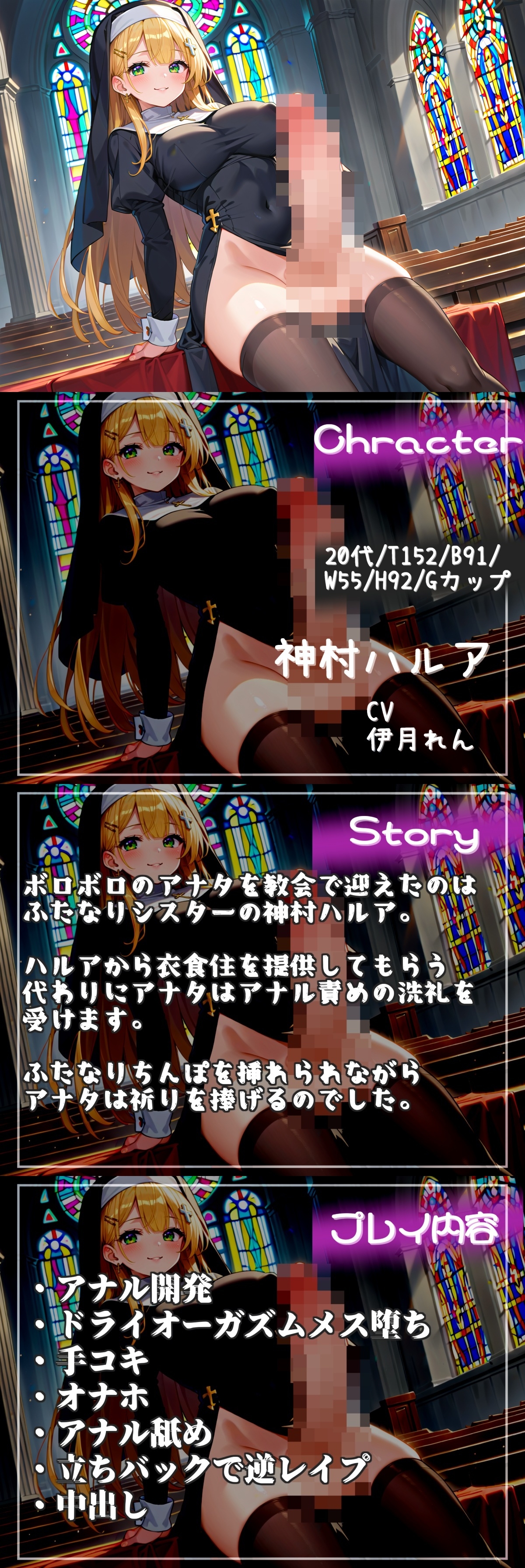ボロボロのアナタを教会で迎えたのはふたなりシスターの神村ハルア。