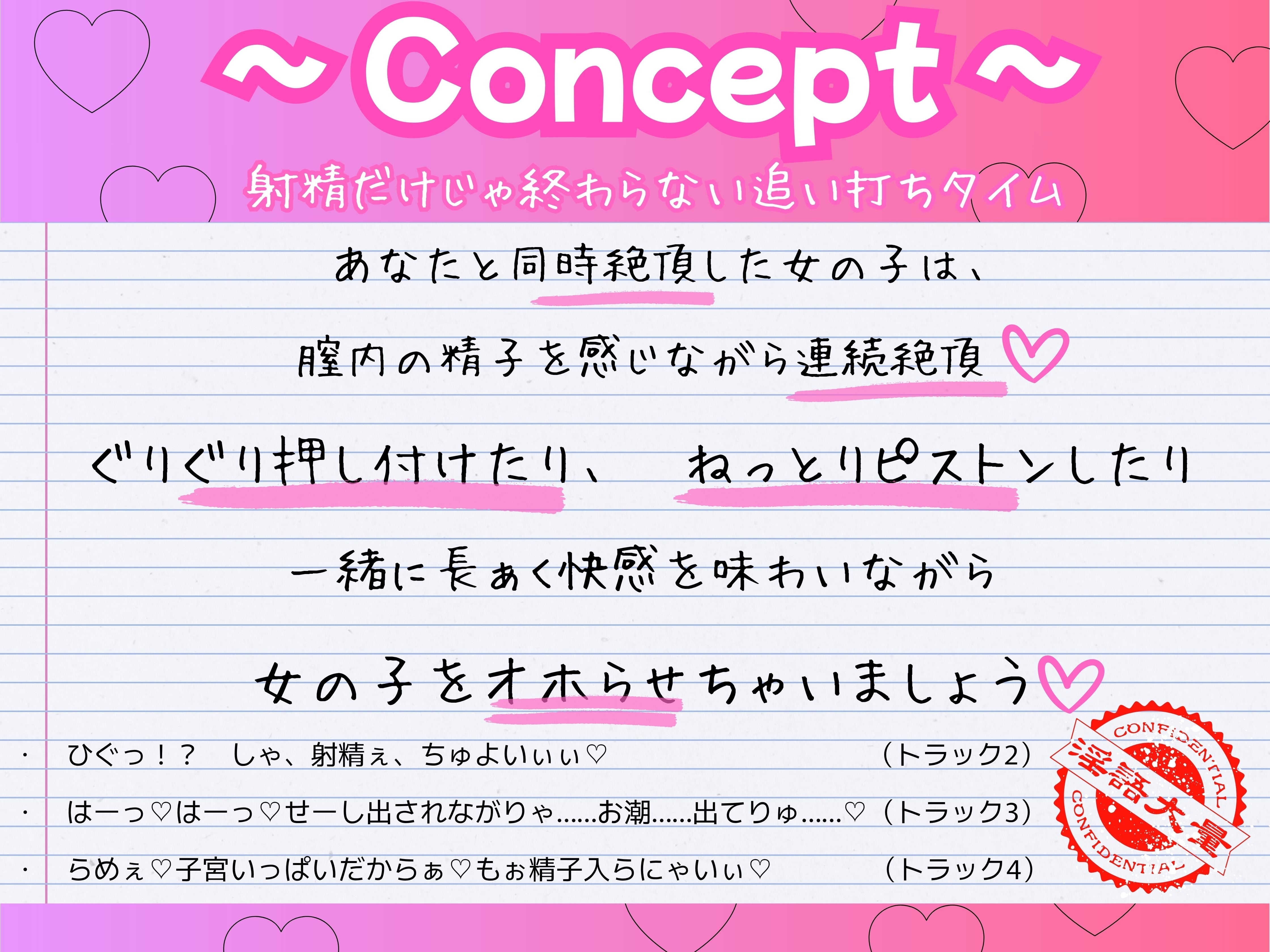 ジャンル | 連続絶頂 バイノーラル/ダミヘ つるぺた ざぁ~こ♡ 快楽堕ち 中出し 耳舐め オホ声 |