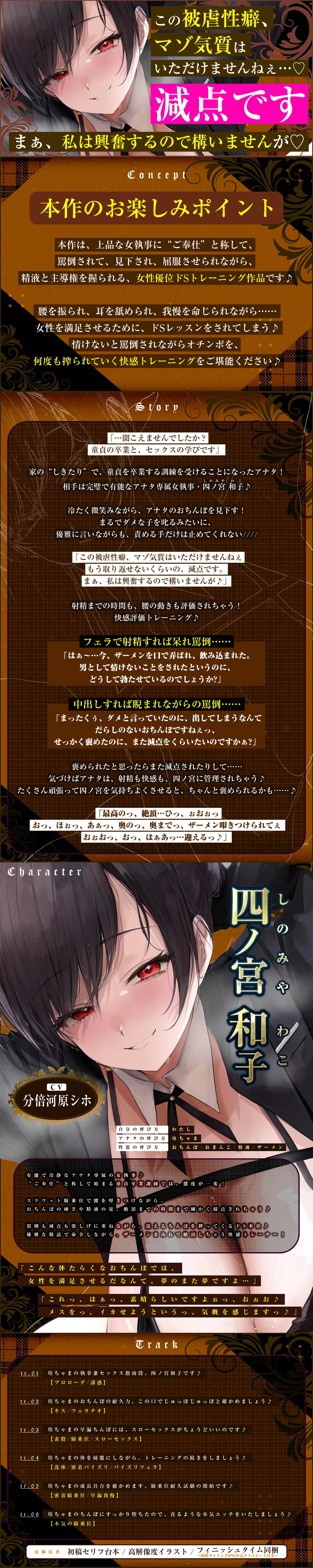 ▼トラック1 坊ちゃまの執事兼セックス指南役、四ノ宮和子です♪(04:43)