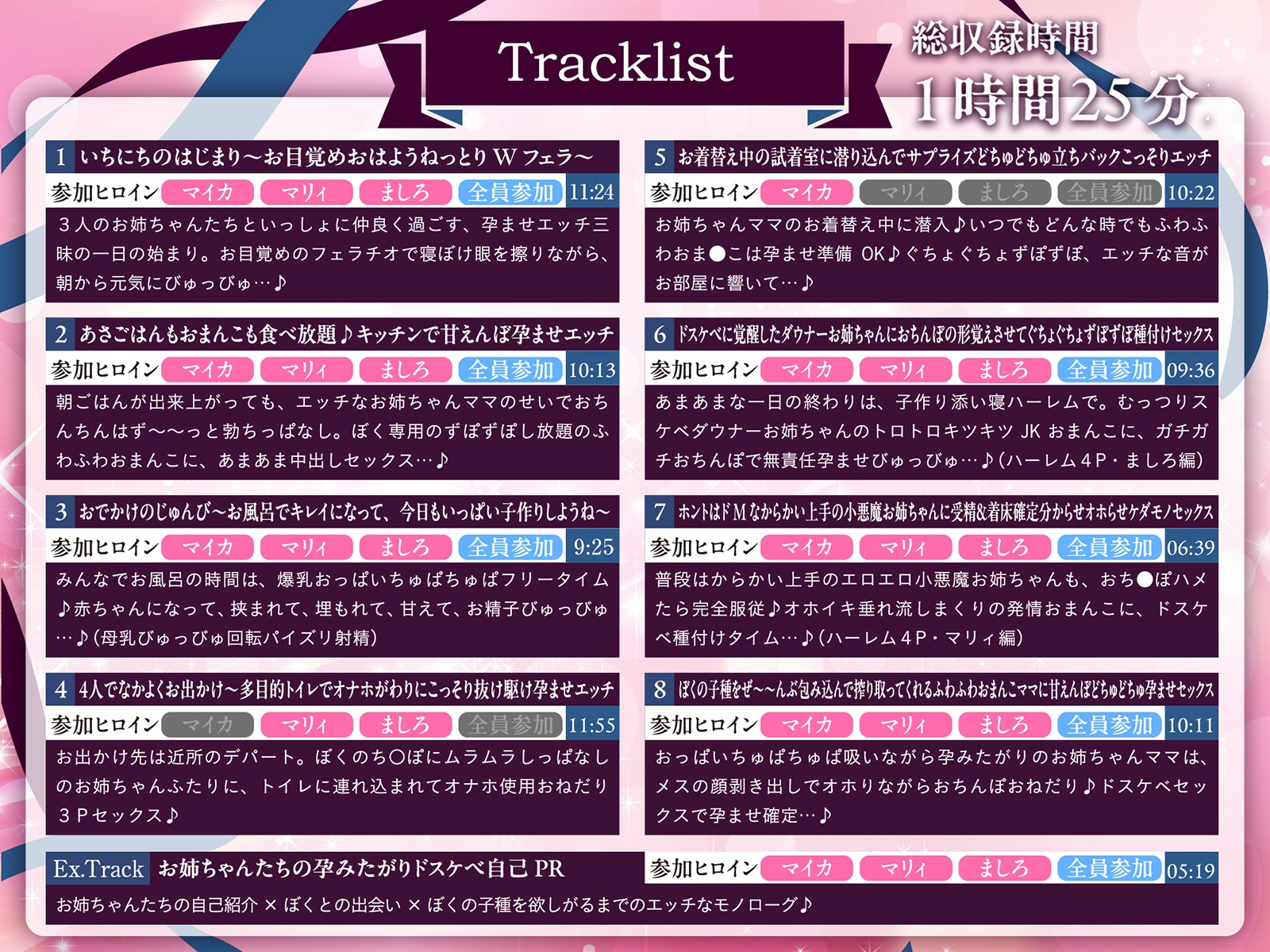 そんな音声に異を唱えるべく、本作は、9トラック中7トラックがヒロイン全員参加という意欲作!