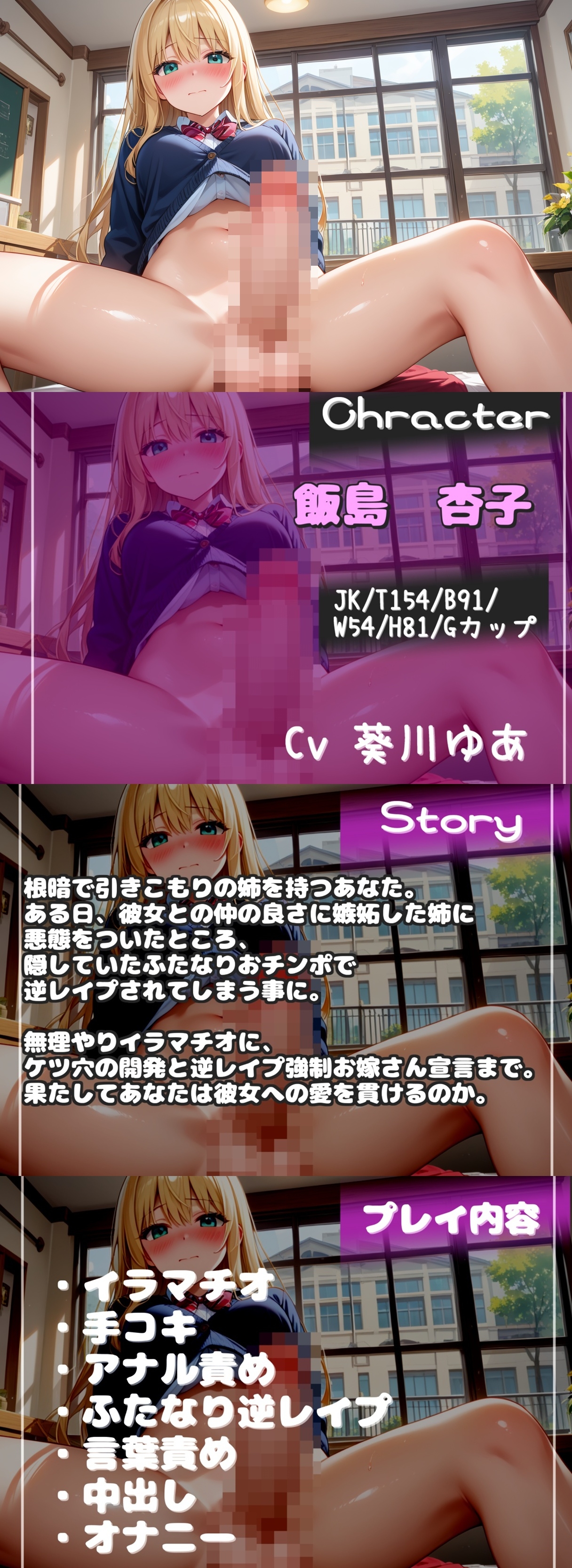 ある日、彼女との仲の良さに嫉妬した姉に悪態をついたところ、隠していたふたなりおチンポでに逆レ○プされてしまう事に。
