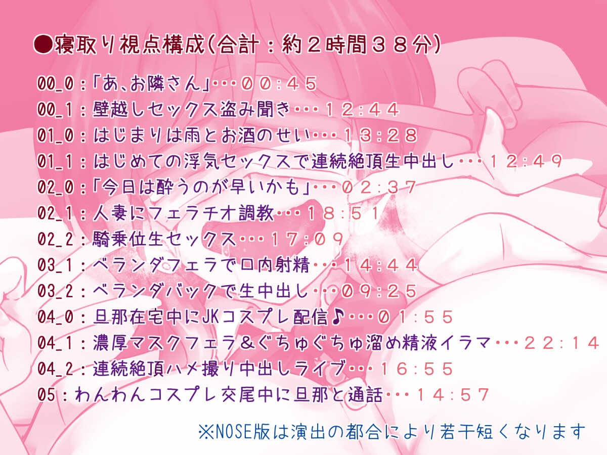 【NTR】隣の人妻さんをドスケベオナホまんこに堕とすまで【複数視点・低音喘ぎ・マスクフェラ他】 [すたじおえむびぃ]