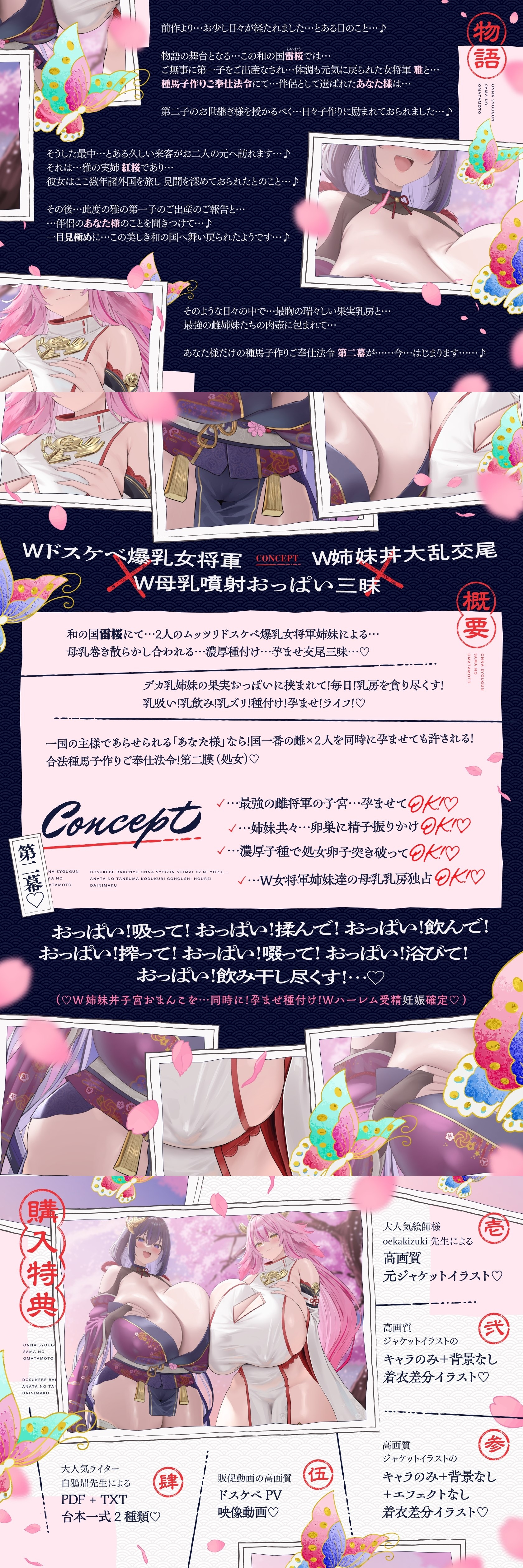 ◆特典18 ぬるテカ肌・W女将軍姉妹2人たちのドスケベ全裸 + 母乳噴射イラスト♡
