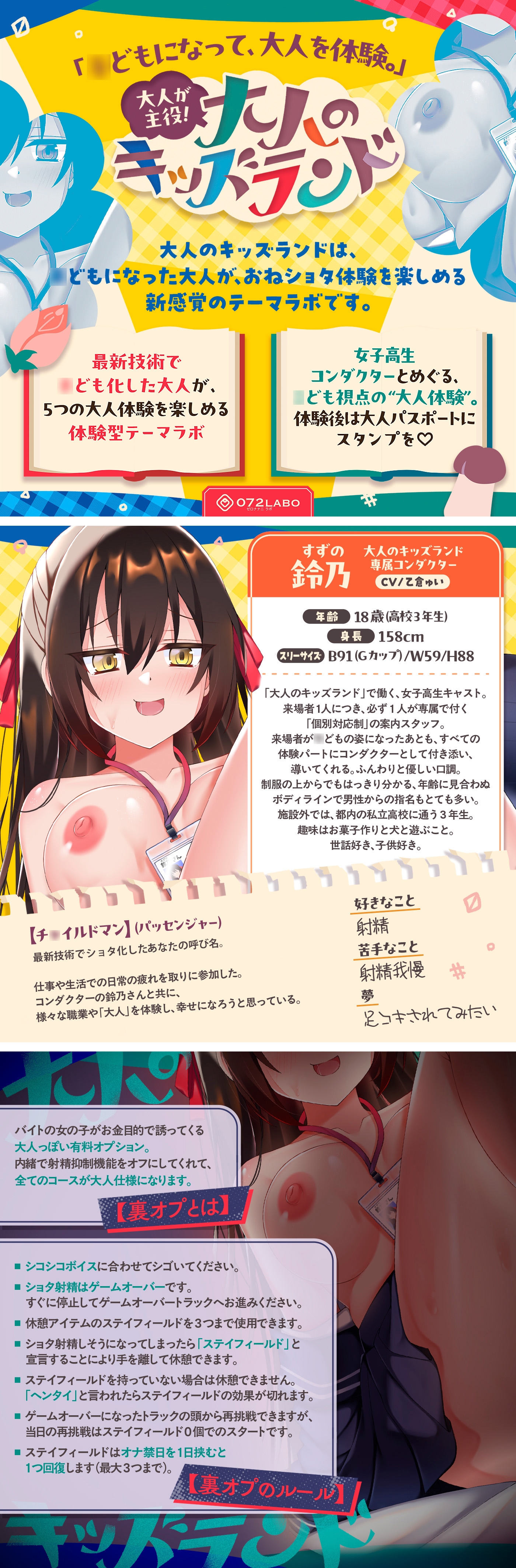 ![【大人体験】大人が主役!「大人のキッズランド1」〜トンネルをくぐるとショタ化♪ショタ射精にはご注意を♡〜【おねショタ】 [072LABO] 【大人体験】大人が主役!「大人のキッズランド1」〜トンネルをくぐるとショタ化♪ショタ射精にはご注意を♡〜【おねショタ】 [072LABO]](http://img.dlsite.jp/modpub/images2/parts/RJ01498000/RJ01497471/868b4d6c22f390d30c5061814529ead3.jpg)