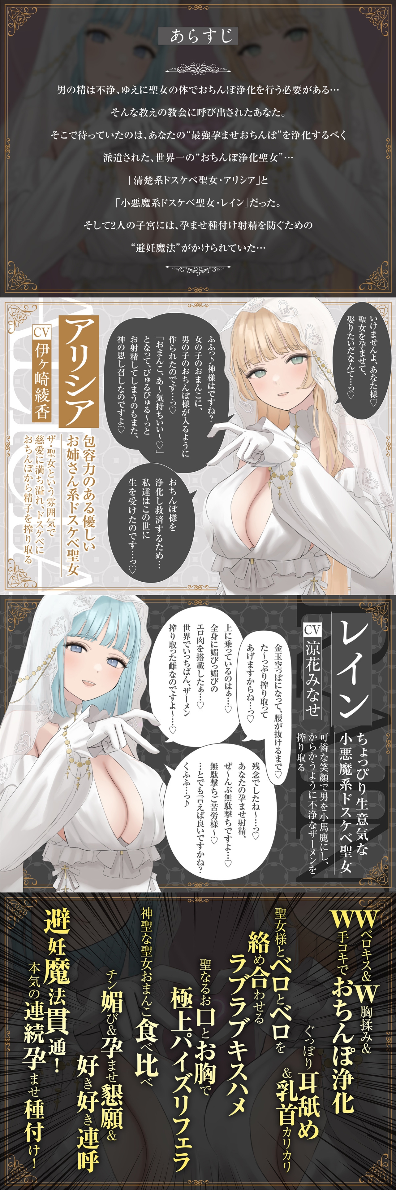 ✅11/28まで早期限定特典✅【密着淫語囁き】避妊魔法 VS 絶倫孕ませおちんぽ ~Wドスケベおちんぽ浄化聖女に不浄なザーメンで孕ませ連続種付け!~【KU100】 [にゃんにゃんぼいす]