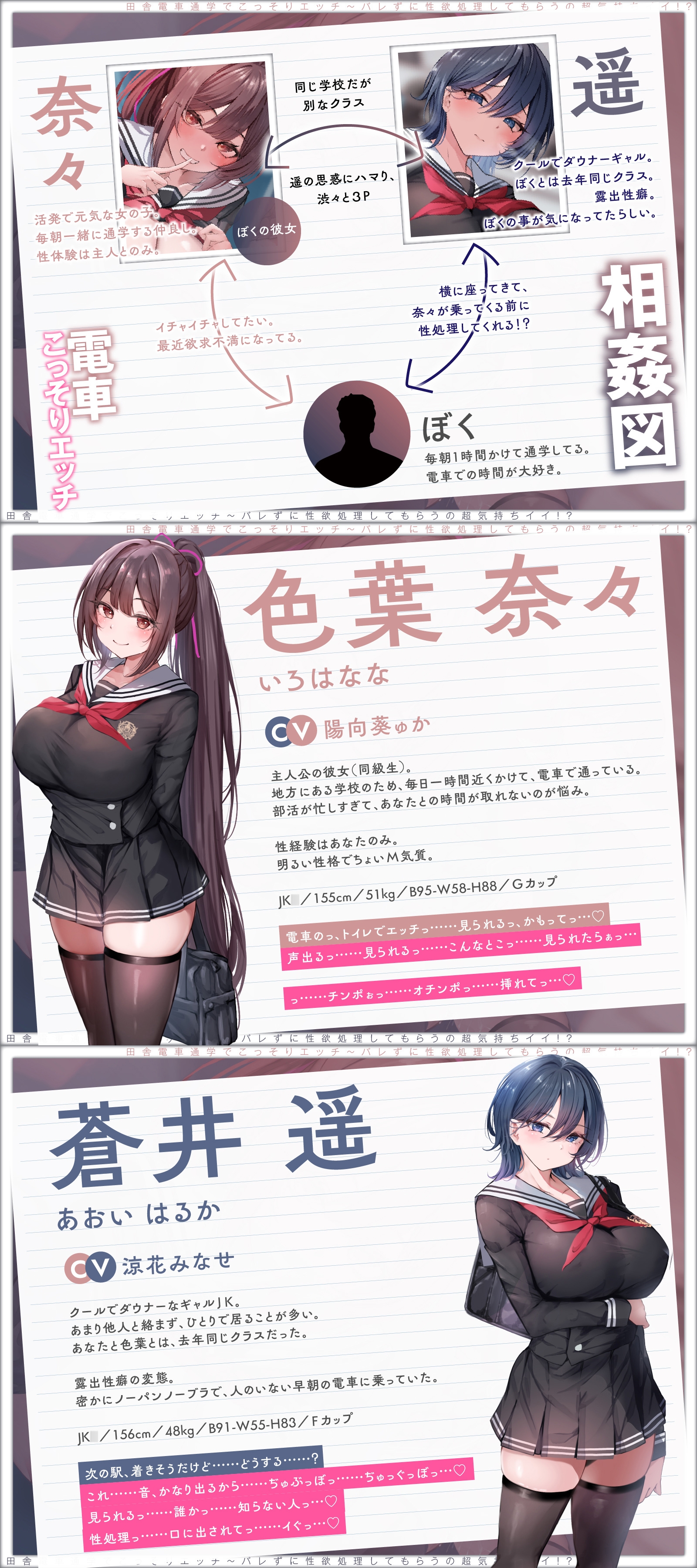 【露出×背徳】電車通学でこっそりエッチ~バレずに性欲処理してもらうの超気持ちイイ!?【JKハメ比べ】