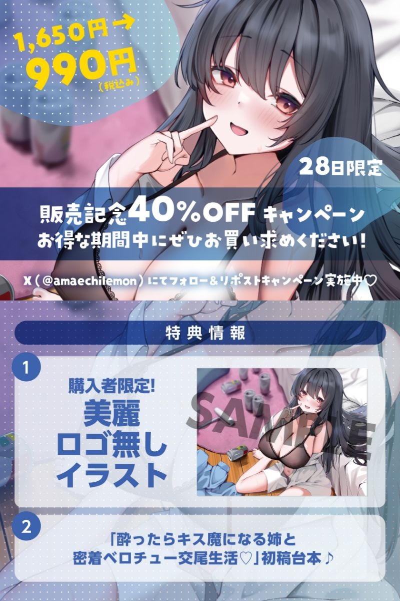 ![【キス×いちゃラブ】酔ったらキス魔になる姉と密着ベロチュー交尾生活♡【KU100収録】 [あまえちレモン園] 【キス×いちゃラブ】酔ったらキス魔になる姉と密着ベロチュー交尾生活♡【KU100収録】 [あまえちレモン園]](http://img.dlsite.jp/modpub/images2/parts/RJ01522000/RJ01521023/7ae05253339ccd098b040642992759e3.jpg)