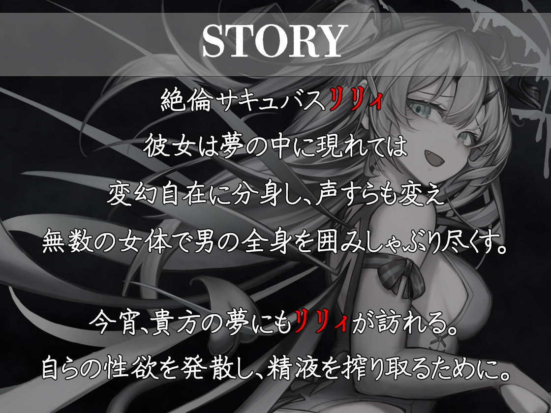 彼女は夢の中に現れては変幻自在に分身し、声すらも変えて無数の女体で男の全身を取り囲み、あらゆる性技でむしゃぶり尽くす。