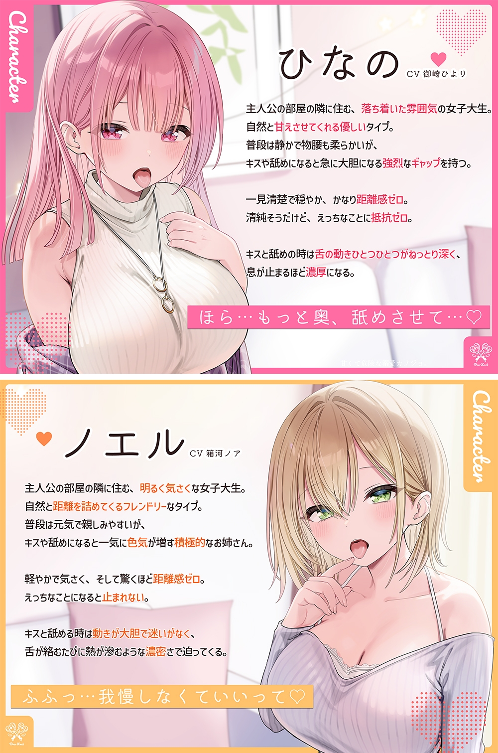 静かで優しい「ひなの」と、明るく積極的な「ノエル」