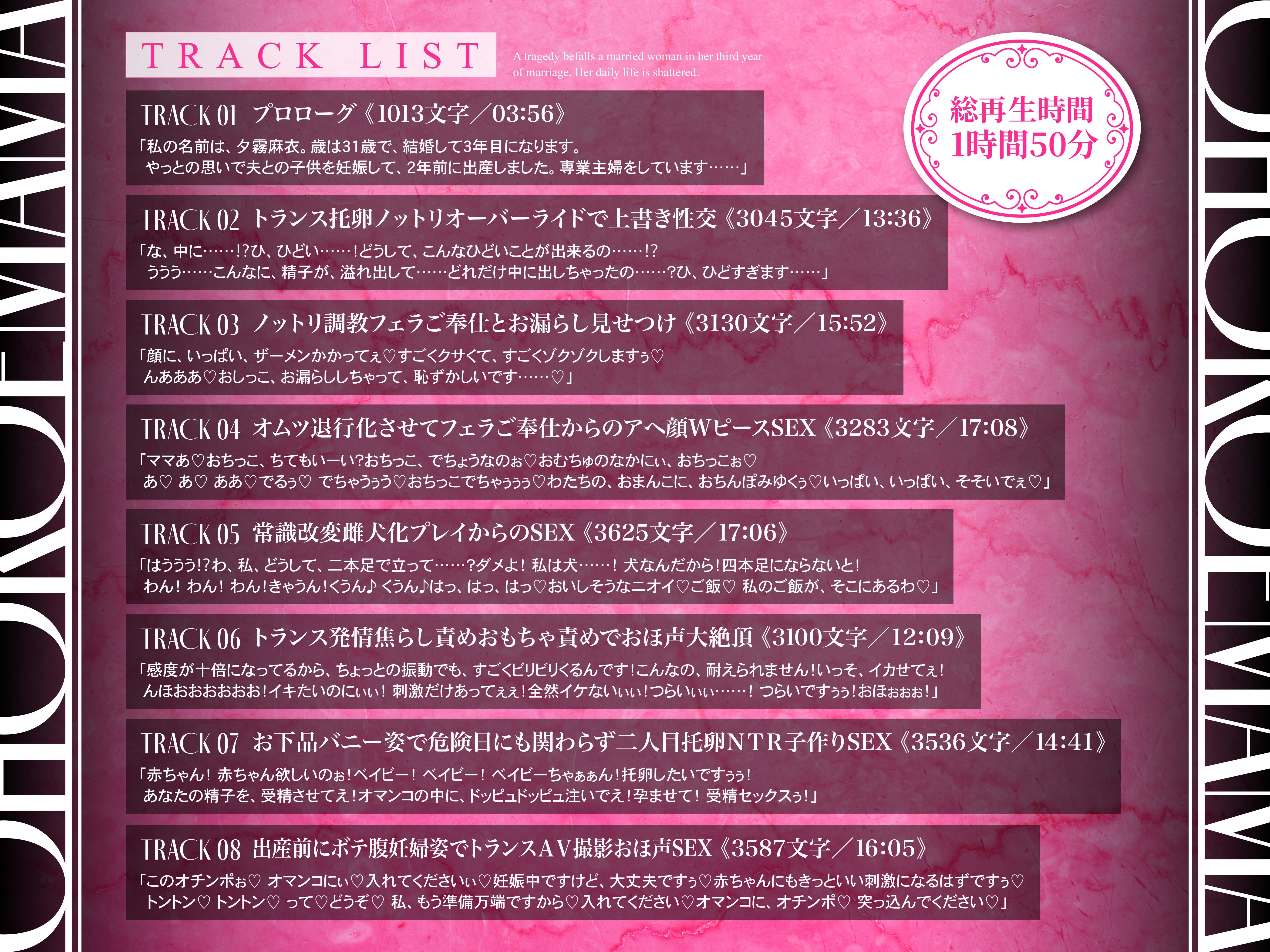 | ジャンル | ASMR 人妻 寝取られ オホ声 中出し 妊娠/孕ませ フェラチオ 巨乳/爆乳 |