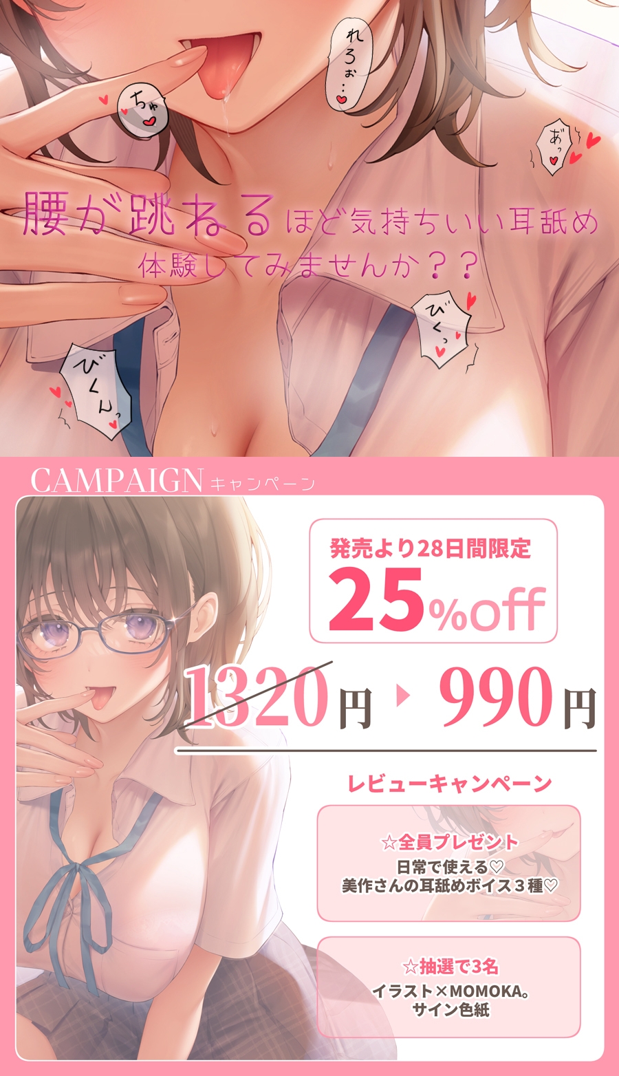 ★レビューキャンペーンでは全員プレゼントの耳舐め音声もご用意♡無料でゲットできちゃうので是非レビューしてね!