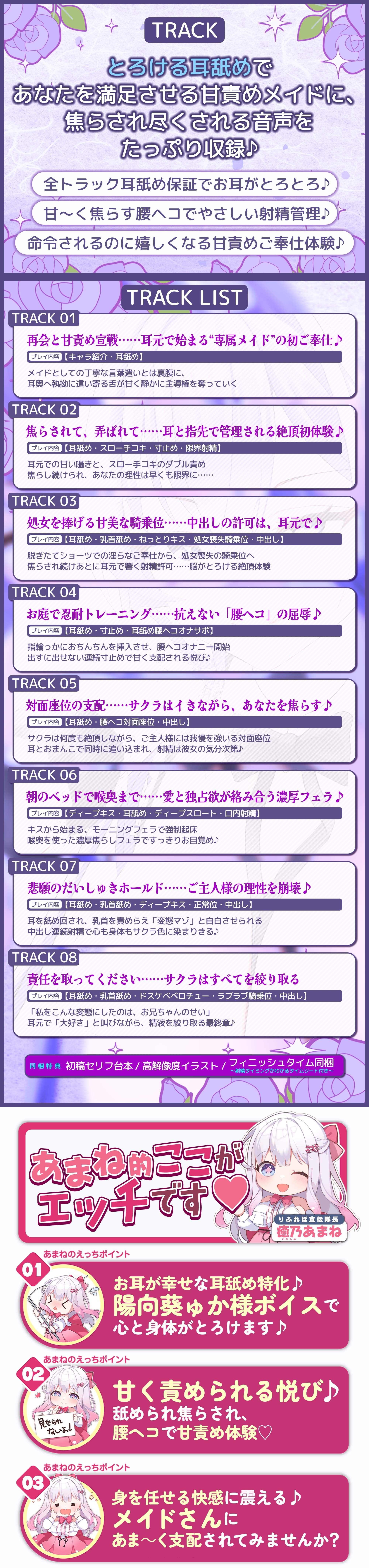 ◆トラック3「サクラの初めてのおまんこご奉仕。お耳も忘れず、舐め尽くします♪」(20:37)