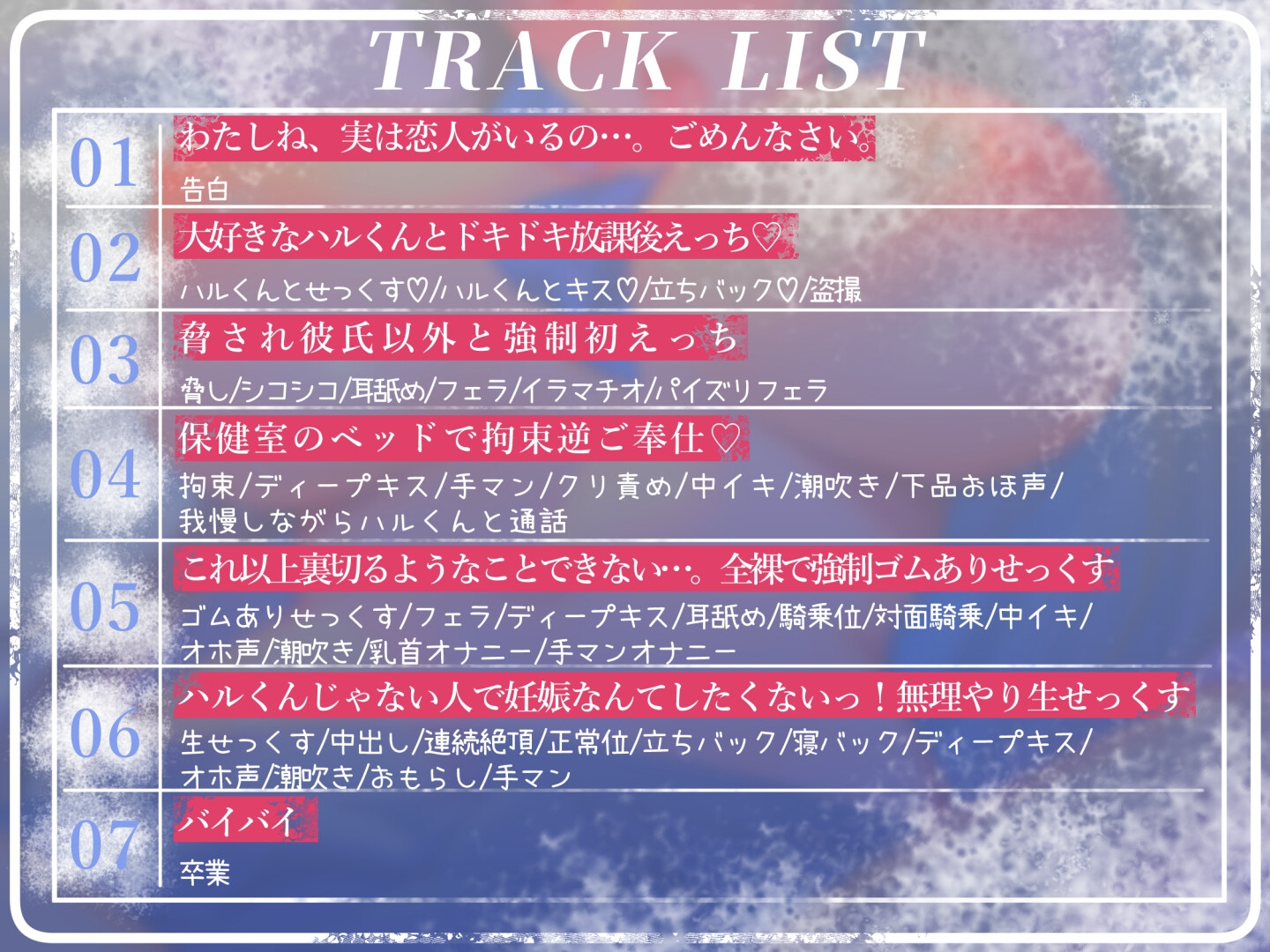 | ジャンル | ASMR バイノーラル/ダミヘ 学校/学園 寝取られ オホ声 中出し フェラチオ 巨乳/爆乳 |