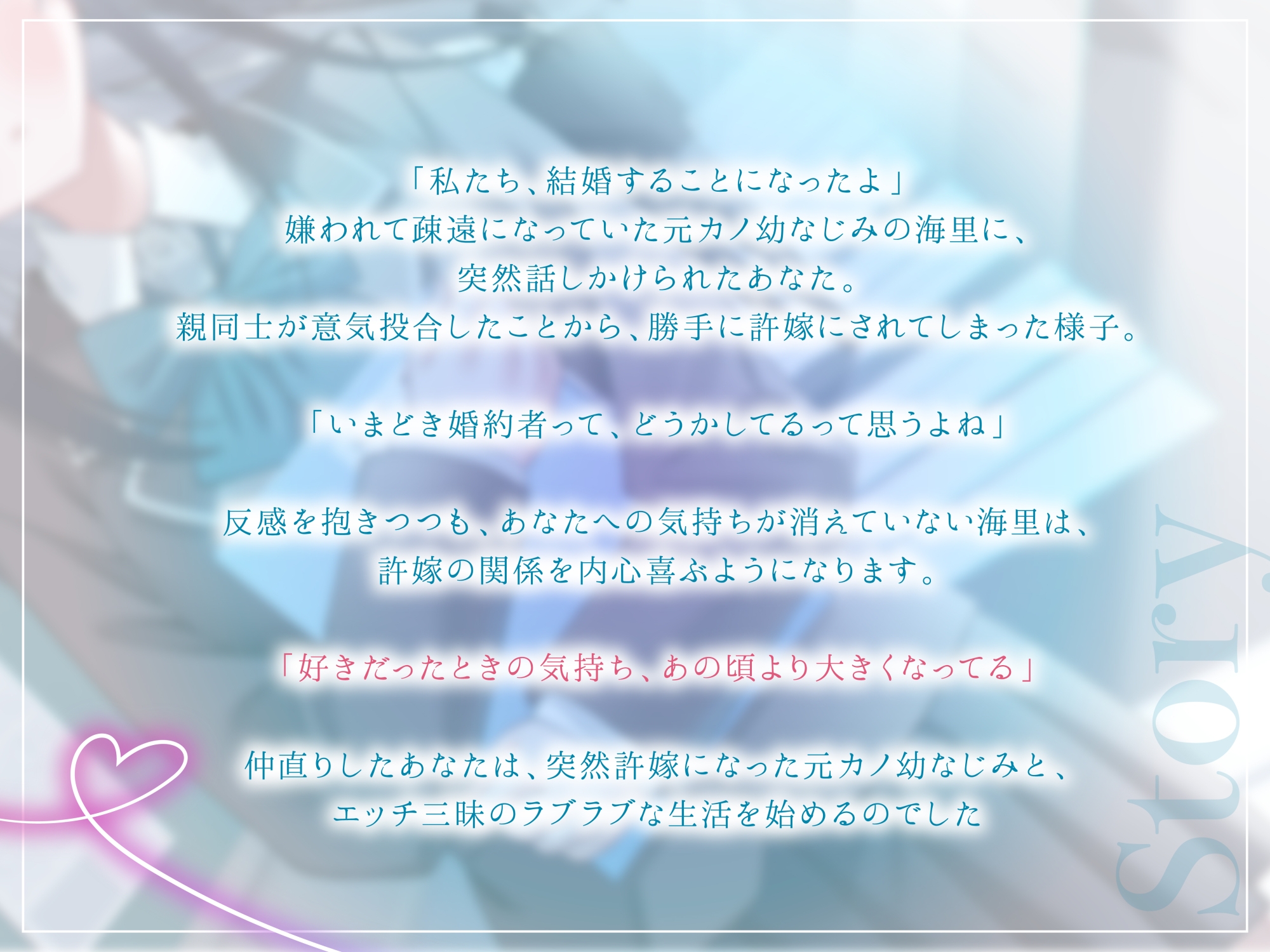 突然許嫁になった元カノとの日常や濃厚エッチを、御崎ひより様のボイスで楽しむことができます。