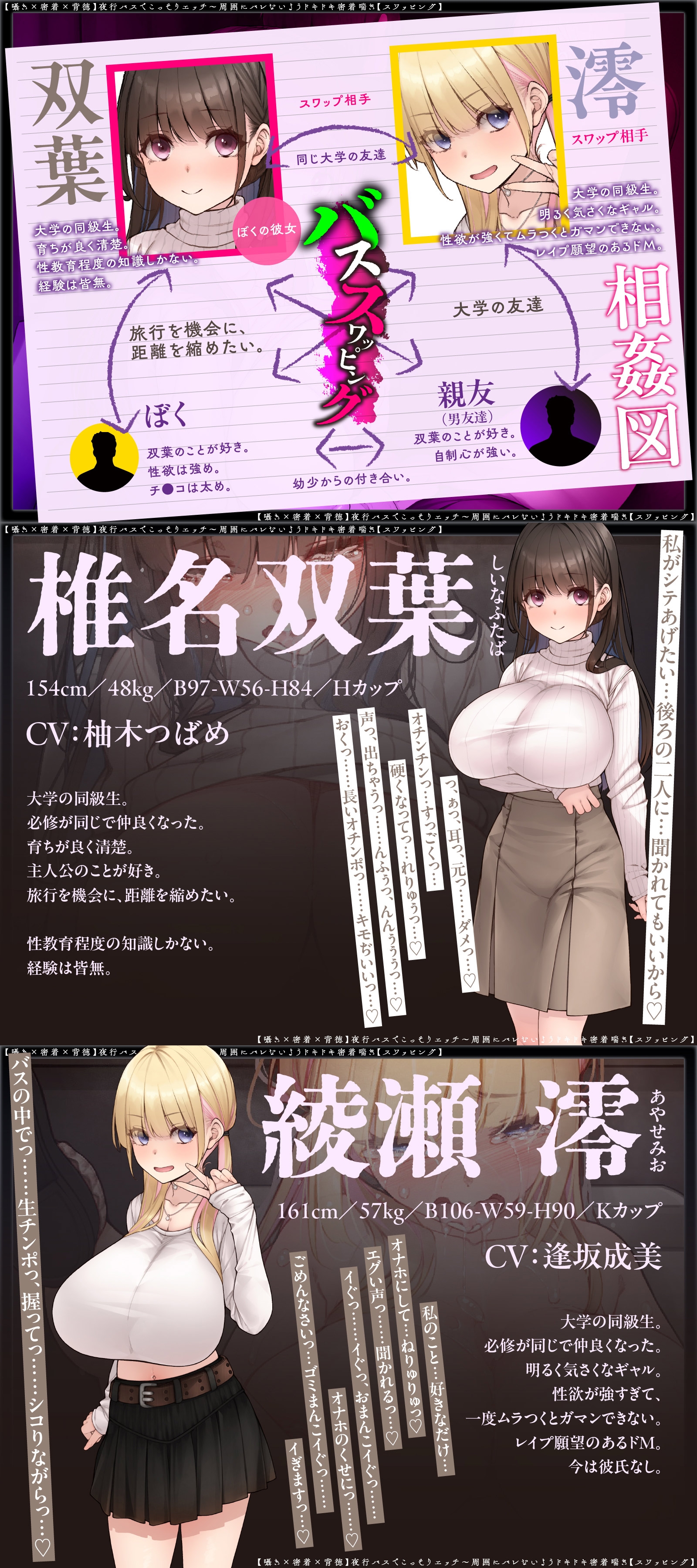 【囁き×密着】夜行バスでこっそりエッチ~周囲にバレないようドキドキ密着喘ぎ【スワッピング】